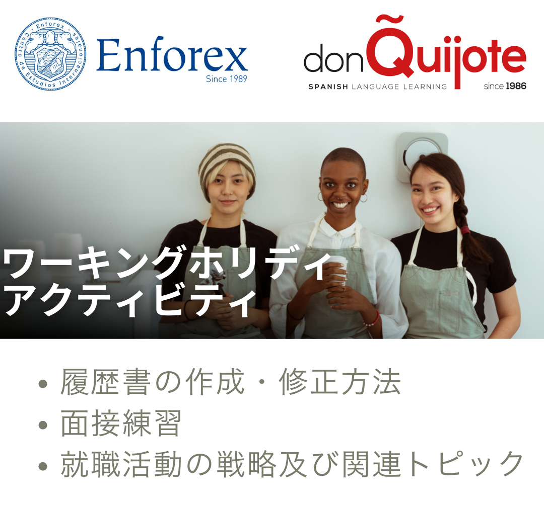 スペイン最大の語学学校グループ Enforex, don Quijoteでは、ワーキングホリデーアクティビティを実施しています。