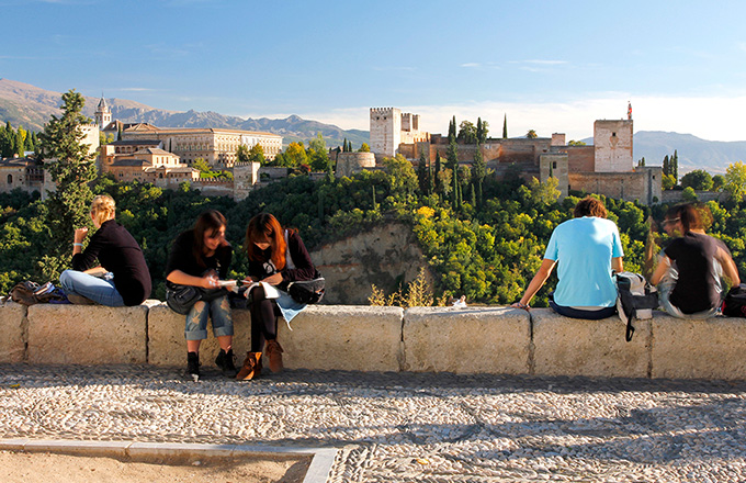 グラナダは1942年のレコンキスタ完了まで、約780年の間、イスラム教徒のイベリア半島支配の中心地として長く繁栄した古都です。その象徴が、イスラム建築の最高傑作の一つと呼ばれるアルハンブラ宮殿です。そのアルハンブラ宮殿、王族の避暑地として造られたヘネラリーフェ、グラナダ最古の居住地であるアルバイシン地区が世界遺産に登録されています。